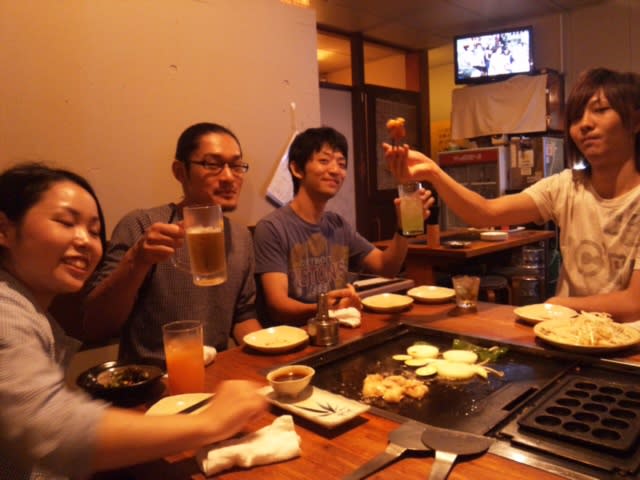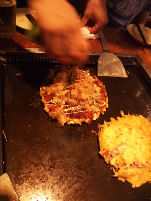 夕方からレッスン 発表会のリハーサル初日 どうぞよろしくお願いします 終了後 サポートバンドのメンバーと食事 鉄板焼き 野菜とホルモン (ホルモン、大人気) いえ~い そして、お好み焼き いい感じで焼けてます 発表会 楽しみましょうね! ありがとう!! 投稿ナビゲーション 9月9日はロイヤルホース例えば