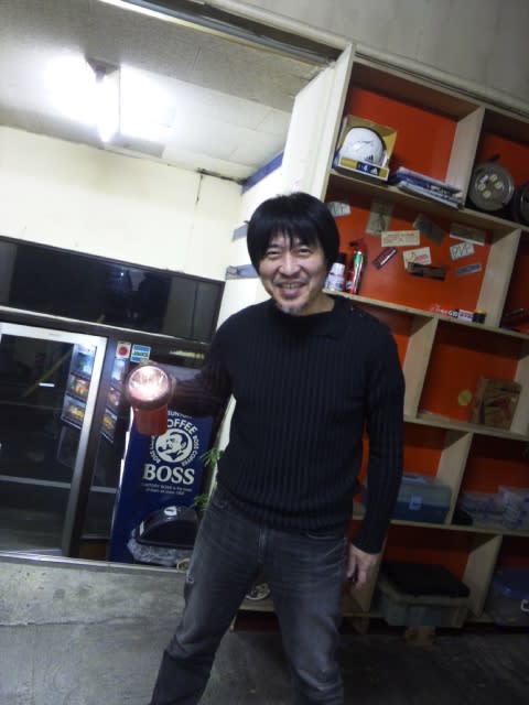 写真は、何故か懐中電灯を持って