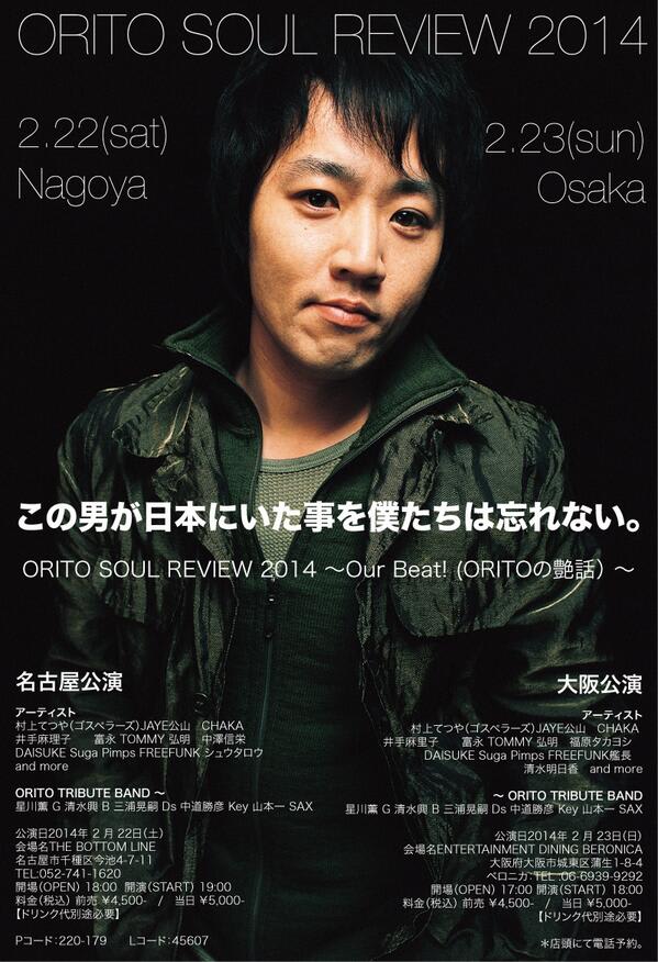 ORITOくんがつないでくれた縁を 大切にします 私は2曲ぐらい、ORITO君の曲と、ソウルミュージックの スタンダード的なダンスナンバーを歌います! みなさん、遊びに来てね 投稿ナビゲーション 大阪!今日:15日は日暮里Bar Porto