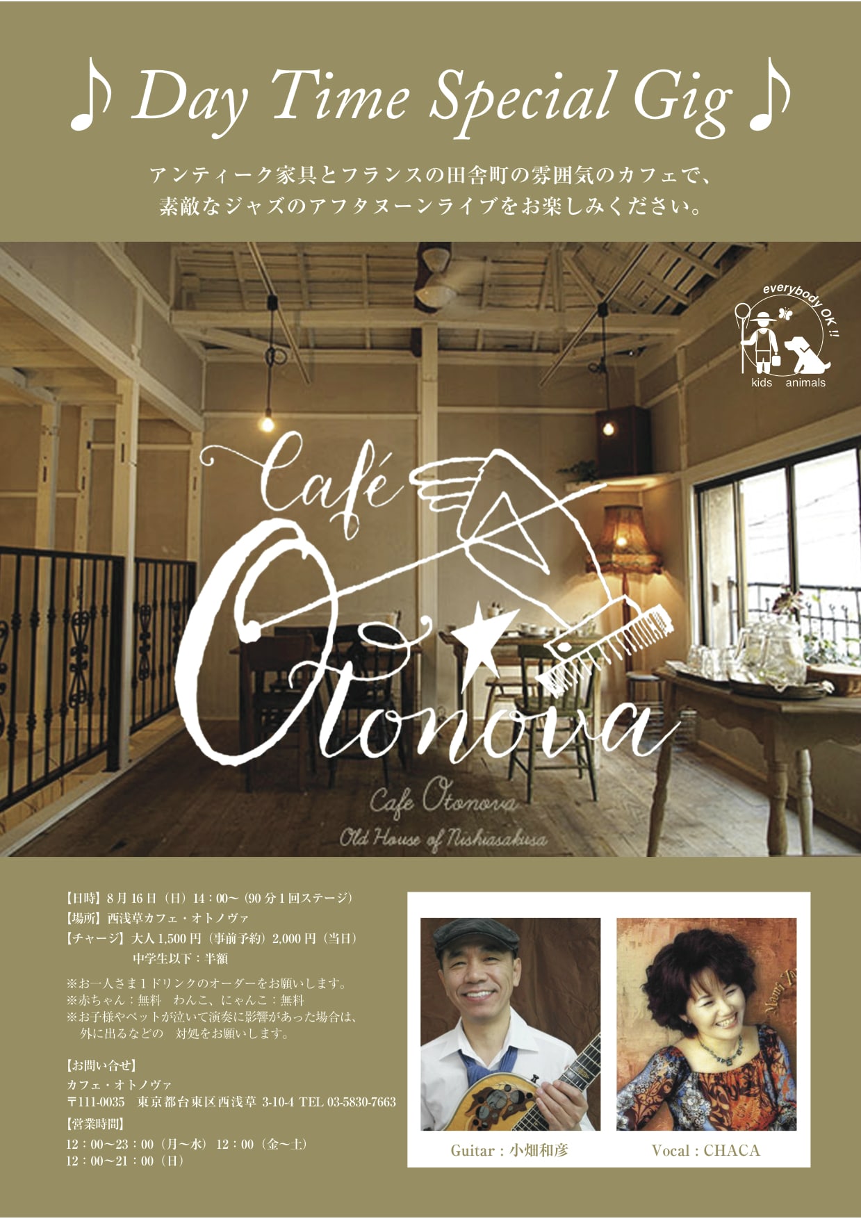 チャーヂ:おとな:1500円(予約)2000円(当日)
