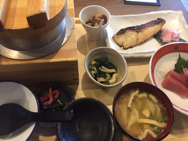 西京焼き、お刺身三点盛り